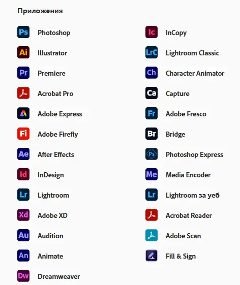Всички приложения на Creative Cloud